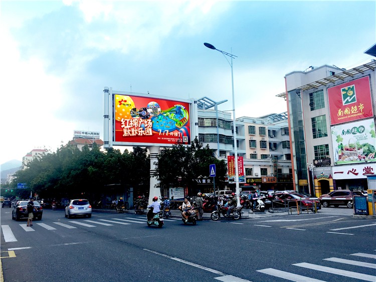 该显示屏位于海南省昌江县城主要交通要道人民北路的南国超市旁,是昌江县城交通及商业中心地段,人流车流量极大,高峰期车滞留时间长,视觉效果极佳,具备极高的广告价值,是昌江县城投放广告,展示企业实力,宣传品牌价值的优质选择。